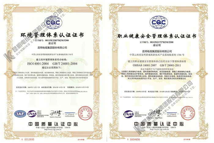 环境管理管理体系认证证书/职业健康管理体系认证证书